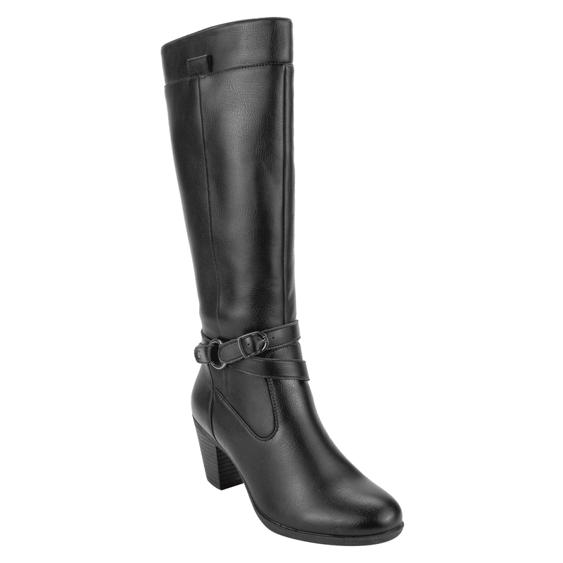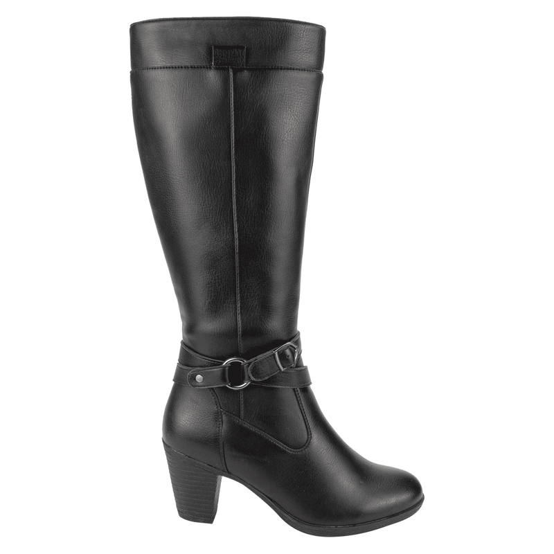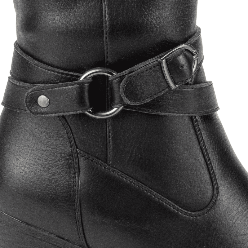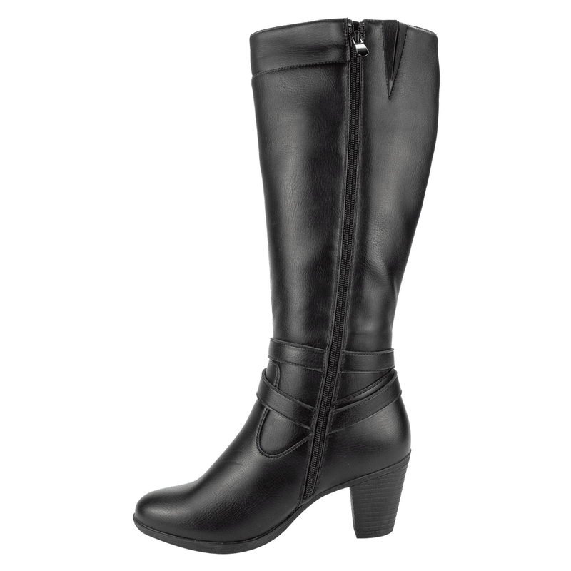 Bota Mujer New Walk color Negro. Estilo casual. Diseño con hebillas decorativas. Contorno pantorrilla: 33,5 cm. Tipo de Cierre: Cierre lateral. Tipo de taco: Cuadrado. Altura de taco: 7,5 cm. Altura caña: 35 cm.