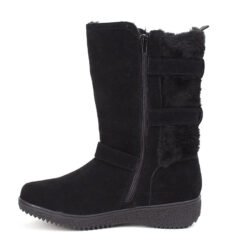 Bota New Walk Negro, fabricada en material Símil Gamuza. Símil piel en caña, hebillas decorativas. Ajuste mediante cierre lateral.Planta de 4 cm y caña de 23 cm. Material capellada: Símil Gamuza. Material Forro: Símil piel en todo el interior, incluye planta. Material Planta: Goma. Horma Normal.