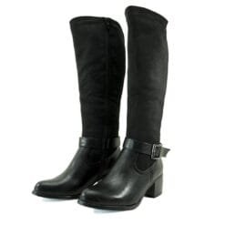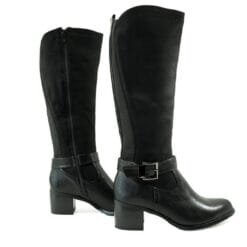 Bota New Walk Negra. Estilo Casual clásico. Adornada con Hebilla Metálica. Capellada símil Reno. Forro textil. Planta de Goma. Taco cuadrado para mejorar la comodidad diaria de 7 cm. Cierre lateral mediante cremallera. Horma Normal.