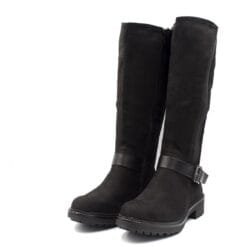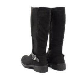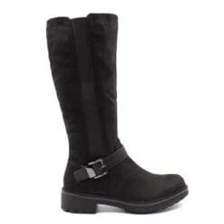 Bota New Walk Negra Clásica. Estilo Informal. Perfecta para un estilo casual. Adornada con hebilla plateada. Cierre Mediante Cremallera Lateral. Taco de Goma de 3 cm de gran Comodidad.Capellada símil Gamuza. Forro Textil. Planta Goma . Horma Normal.