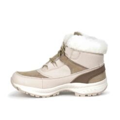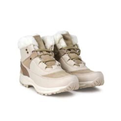 Botín Mujer New Walk color beige. Estilo Outdoor. Diseño con símil de piel en el tobillo y todo el interior incluyendo la planta. Ajuste mediante cordones redondos al tono. Planta 3 cm de altura. Caña de 9 cm. Material Capellada: Símil cuero y símil gamuza.Material Forro: textil.Material Planta: Goma. Horma Normal.