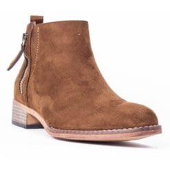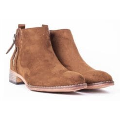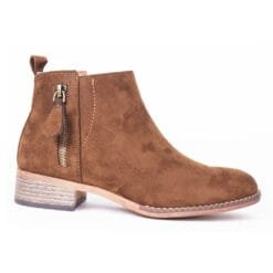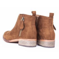 Botín Mujer New Walk color Camel. Confeccionado en Símil Gamuza. Ajuste mediante cierre lateral. Cierre decorativo en un costado externo con tirador colgante. Taco de 3 cm de alto y caña de 10,5 cm de alto. Material de Capellada: Símil Gamuza. Material Forro: Textil. Material Planta: Goma Horma Normal.