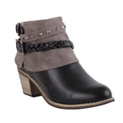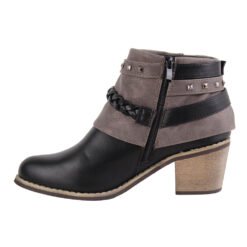 Botín Mujer New Walk Negro. Estilo casual. Capellada símil cuero. Forro textil. Diseño estilo casual con cintos decorativos trenzados y con tachas, en tobillo. Taco cuadrado. Pespunte a tono. Planta de goma. Tipo de Cierre Cierre interior Forma de taco Cuadrado Altura exacta taco 6 cm Forma de punta Redonda Altura caña 9,5 cm Tabla de medidas:Talla Medida35 22 cms.36 23 cms.37 24 cms.38 25 cms.39 26 cms.40 27 cms.