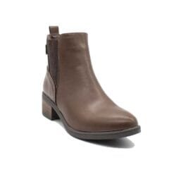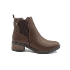 Botín Mujer New Walk color café, estilo casual. Capellada símil cuero liso. Detalle de traba con tacha en parte posterior del talón. Cierre mediante cremallera en costado interno del botín. Taco cuadrado de 4 cm y caña de 11 cm de altura. MaterialesCapellada: Poliuretano y PoliesterForro: PoliesterPlanta: Goma Horma normal