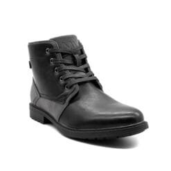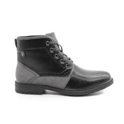 Botín Hombre New Walk color negro. Estilo casual. Capellada símil cuero liso y símil gamuza. Detalle decorativo en talón de traba con tachas. Ajuste mediante cordones planos al tono. Planta de 3 cm y caña de 13 cm de altura Material Capellada: 100% Poliuretano Material Forro: 100% Poliester Material Planta: Goma. Horma normal