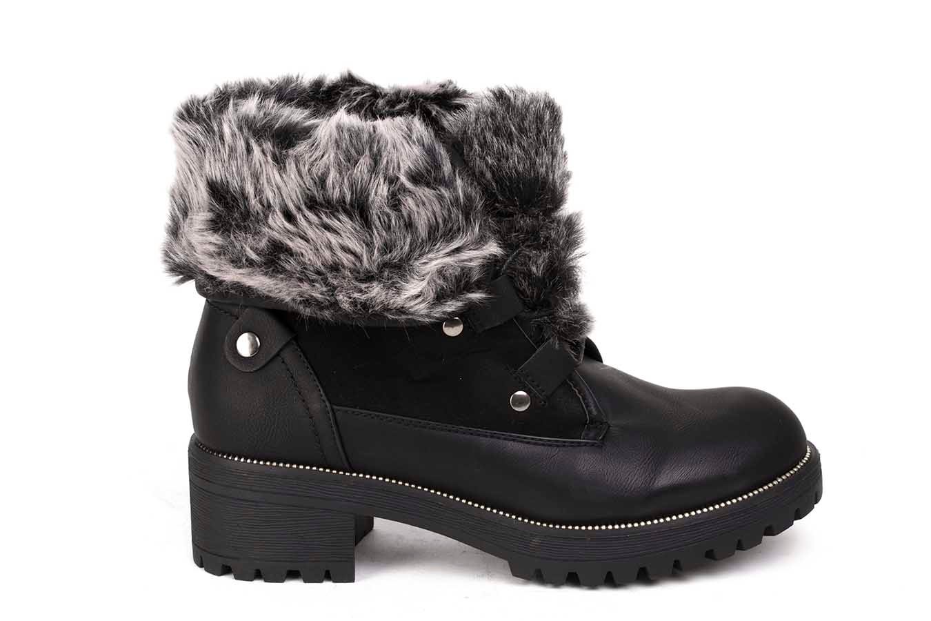 Botín Mujer Color Negro New Walk. Estilo casual. Confeccionado en símil cuero y símil piel. Ajuste mediante cordones.Taco de 5 cm de altura, caña de13 cm. Material Capellada: Símil cuero. Material Forro: Piel y textil. Material Planta: Goma Horma Grande.