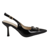 Sandalia de Mujer New Walk color dorado. Estilo Casual. Capellada en símil cuero liso con cinta central en tono mate con costuras dobles visibles y adorno metálico en bordo superior. Ajuste tipo Slip On. Taco Chino de 7 cm de alto.
