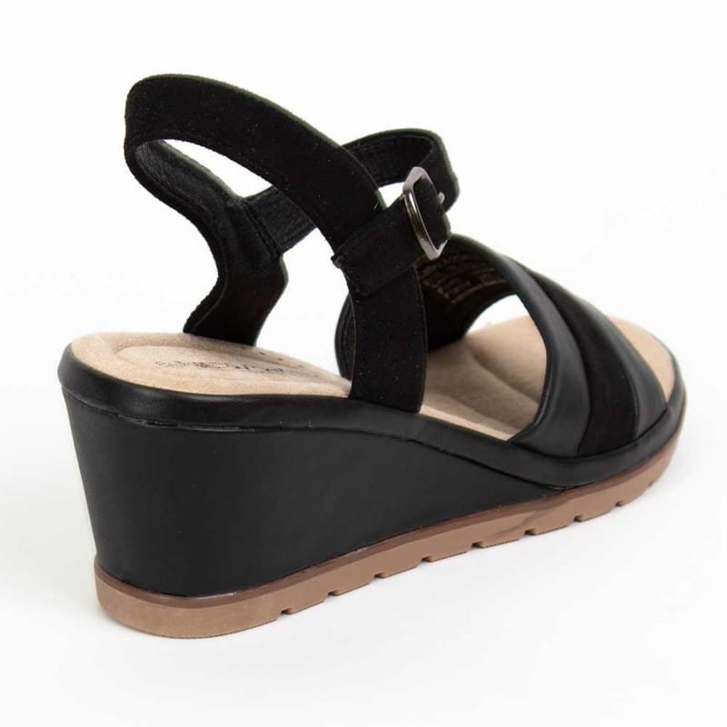 Sandalia New Walk negra de Mujer. Estilo Casual. Cierre mediante Hebilla lateral metálica. Capellada de Poliester y Poliuretano. Forro de Poliuretano. Planta de Poliuretano. Taco con 7 cm de altura. Tabla de medidas: 35 mide 23 cm, 36 mide 24 cm, 37 mide 24,5, 38 mide 25 cm. 39 mide 26 cm, 40 mide 26,5 cm.