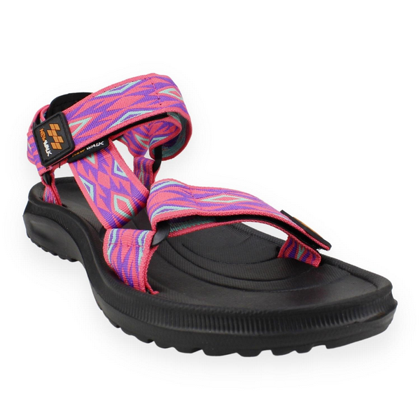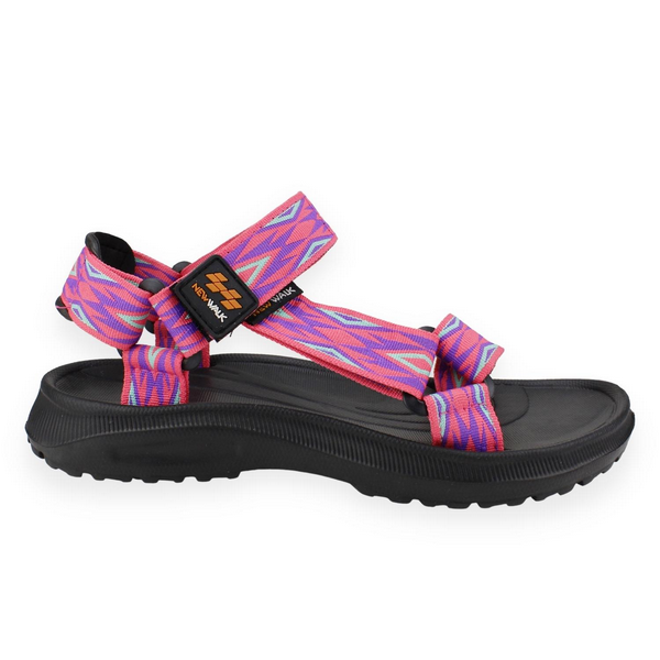 Sandalia Mujer New Walk color rosa. Estilo casual. Diseño con tiras textiles con patrones de rombos en distintos tonos de colores, super cómodas, especiales para los dias de playa. Ajuste mediante Velcro. Altura de planta 3 cm. Material Capellada: Nylon. Material Forro: Nylon. Material Planta EVA. Tabla de medidas: 36 mide 24 cm, 37 mide 25 cm, 38 mide 25,5 cm, 39 mide 26 cm, 40 mide 27 cm, 41 mide 27,5 cm
