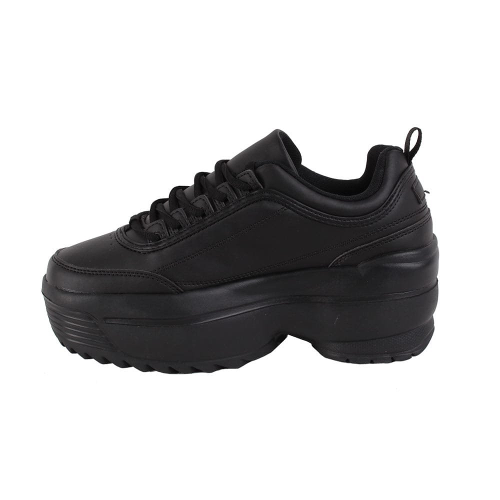 Zapatilla mujer urbana New Walk chunky color negro. Capellada símil cuero liso opaco. Cordones redondos al tono. Planta estilo plataforma de 7 cm de alto y caña de 6,5 cm. Materiales Capellada: Poliuretano Forro: Mesh. Planta: Philon. Horma normal