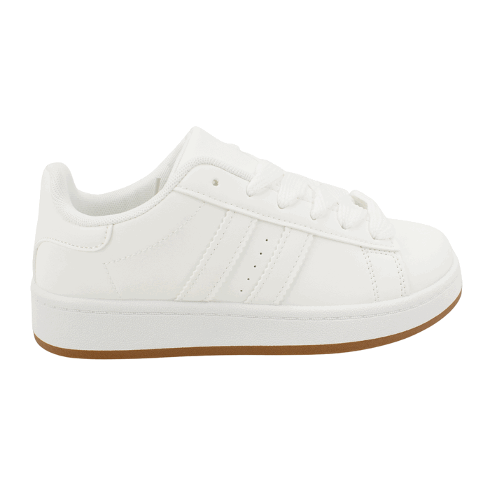 Zapatilla Mujer New Walk blanco. Estilo Urbano. Capellada en símil cuero. Viaja en el tiempo con estas zapatillas clásicas de eco cuero, un homenaje a los diseños icónicos que marcaron una época. Su estilo retro y sus detalles distintivos te permitirán revivir la nostalgia con un toque moderno. Perfectas para quienes buscan un calzado con historia y personalidad. Ajuste mediante cordones planos. Plataforma de 3,5 cm de altura y caña de 6,5 cm de alto.