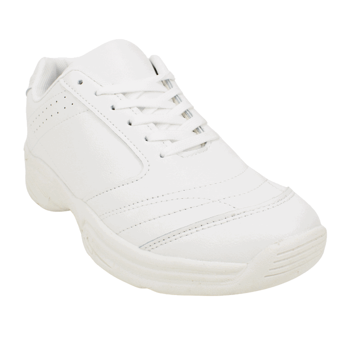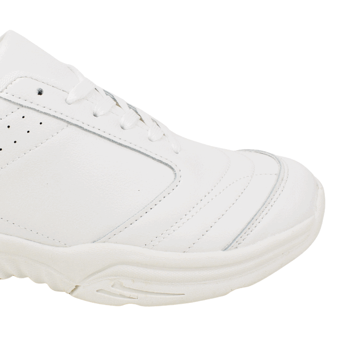 Zapatilla Unisex New Walk color blanco. Estilo Escolar. ¡Prepárate para el regreso a clases o tus entrenamientos con el calzado ideal! Esta zapatilla deportiva blanca destaca por su diseño clásico y funcional, pensado para resistir el ritmo diario. Su estructura reforzada con costuras visibles asegura una mayor durabilidad, mientras que su interior acolchado brinda la comodidad necesaria para largas jornadas. Ajuste mediante cordones. Plataforma de 4 cm y caña de 6,5 cm.