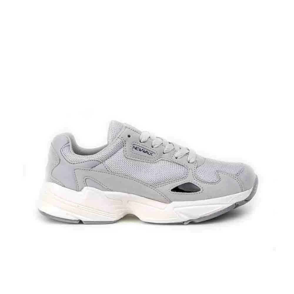 Zapatilla Mujer New Walk color Gris. Estilo deportivo. Capellada símil cuero gamuza y textil. Planta de 5 cm de altura. Caña de 6 cm. Ajuste mediante cordones. Material Capellada: Síntetico. Material Forro: Textil. Material Planta: Goma. (Horma pequeña).
