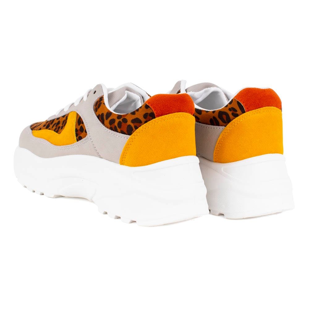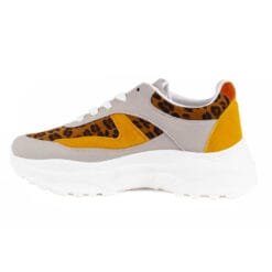 Zapatilla Mujer New Walk urbana estilo Chunky. Capellada simil gamuza con aplicación de leopardo. Cordones planos color blanco. Planta de 5 cms de altura y caña de 6 cms. Materialidades. Capellada de Poliuretano. Forro en textil y planta de PVC. Horma normal.