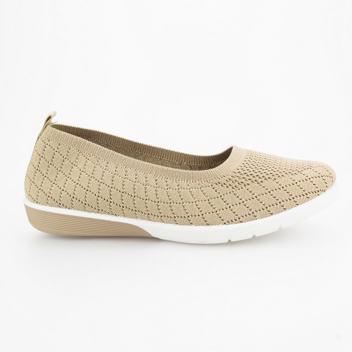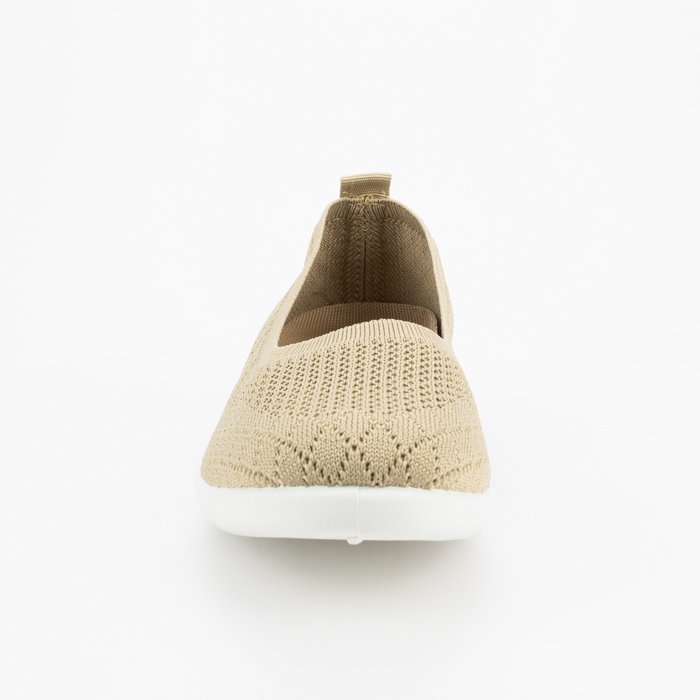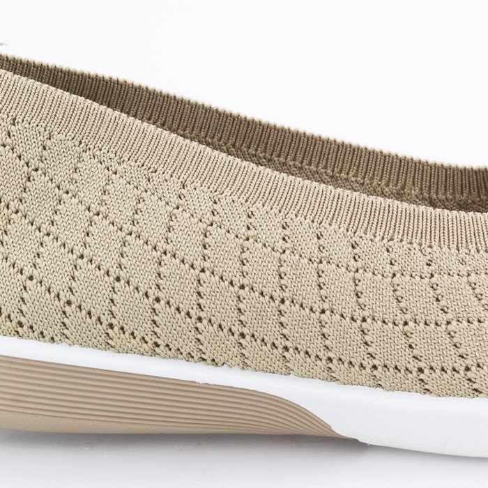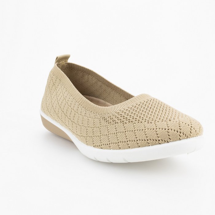 Zapatilla Mujer deportiva New Walk color Beige, tipo calcetín, abierta. Zapatilla confort de planta blanda ideal para el día a día. Planta color blanco en contraste. Caña de 5 cm de altura y planta de 2 cm. Materiales Capellada: 100% Poliéster. Forro: 100% Poliéster. Planta: 100% TPR. Horma normal