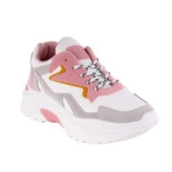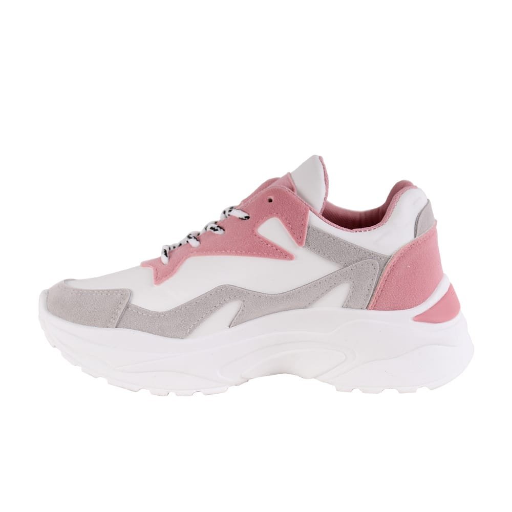 Zapatilla urbana multicolor. Capellada símil gamuza con cordones redondos rayados. Taco de 5 cm de altura y caña de 5,5 cm.