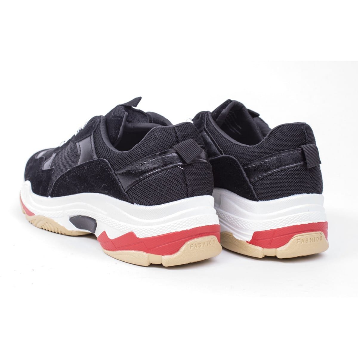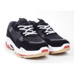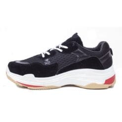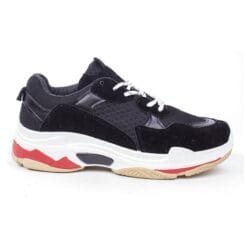 Zapatilla New Walk Negra. Estilo Chunky. Capellada de diseño mixto en simil cuero y textil. Planta blanca con aplicación de colores. Material planta PVC. Altura de planta 4.5 cm, altura caña 5.5 cm. Horma Chica