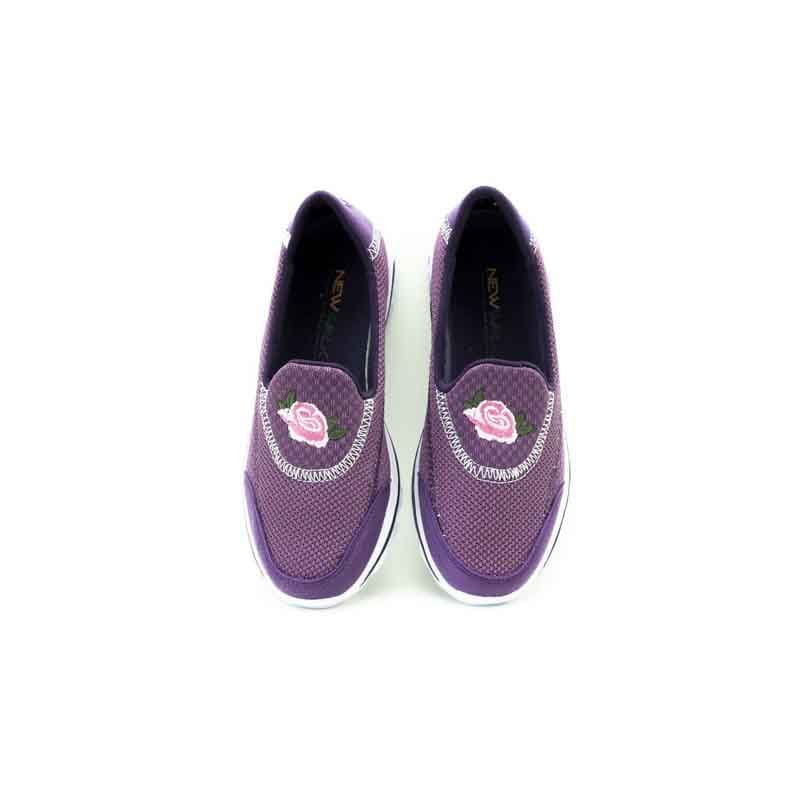 Zapatilla New Walk Purpura con bordado de flor en punta. Estilo sporturbano. Capellada y forro textil. Planta goma. Horma Normal.