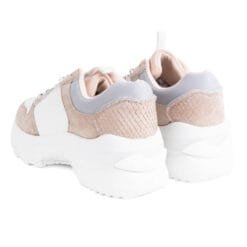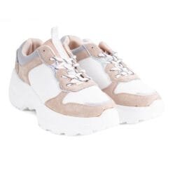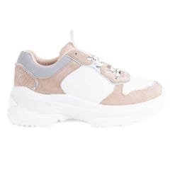Zapatilla Mujer New Walk urbana multicolor y texturixada. Capellada simil gamuza con cordones redondos rayados. Taco de 6 cms de altura y caña de 5,5 cms. Materialidades. Capellada de Poliuretano y poliester, Forro en poliester y planta de PVCHorma normal.