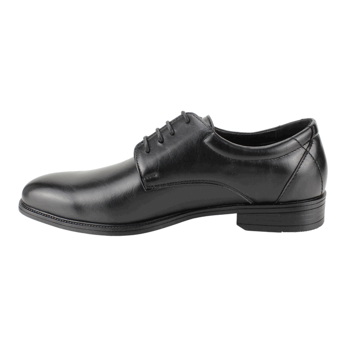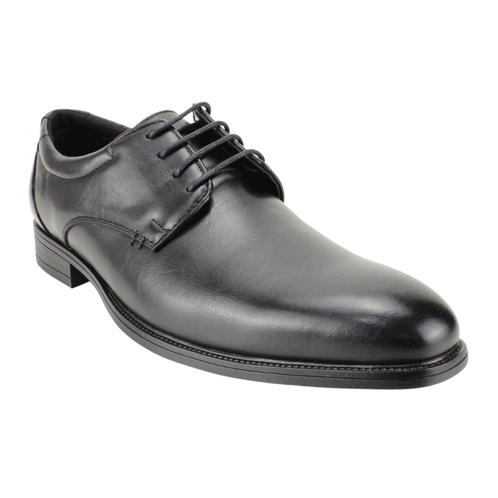 Zapatos de vestir hombre New Walk color negro. Estilo Formal. Diseño clásico y elegante para ocasiones formales y oficina. Símil cuero negro de alta calidad, cómodos y duraderos. ¡Eleva tu estilo con estos zapatos de vestir imprescindibles!». Ajuste mediante cordones delgados a tono. Taco cuadrado de 3 cm de altura y caña de 6,5 cm.