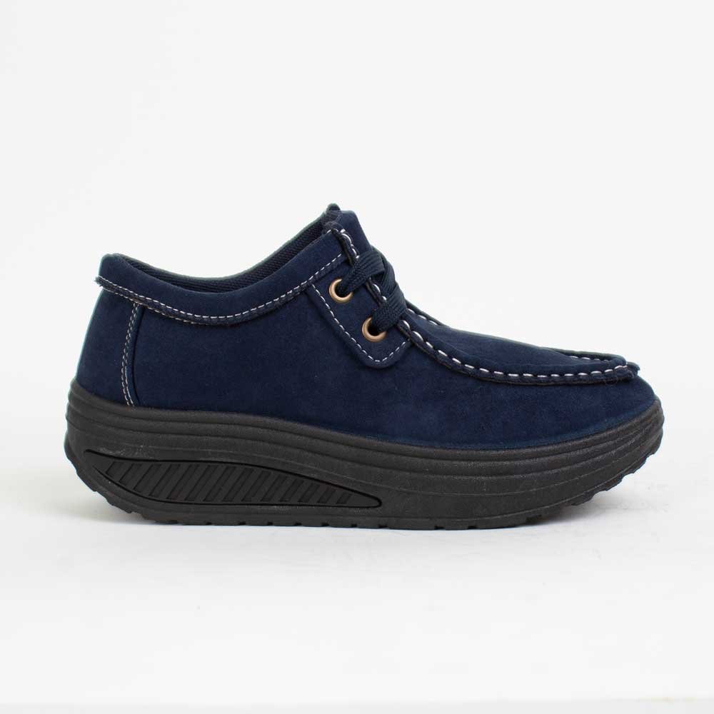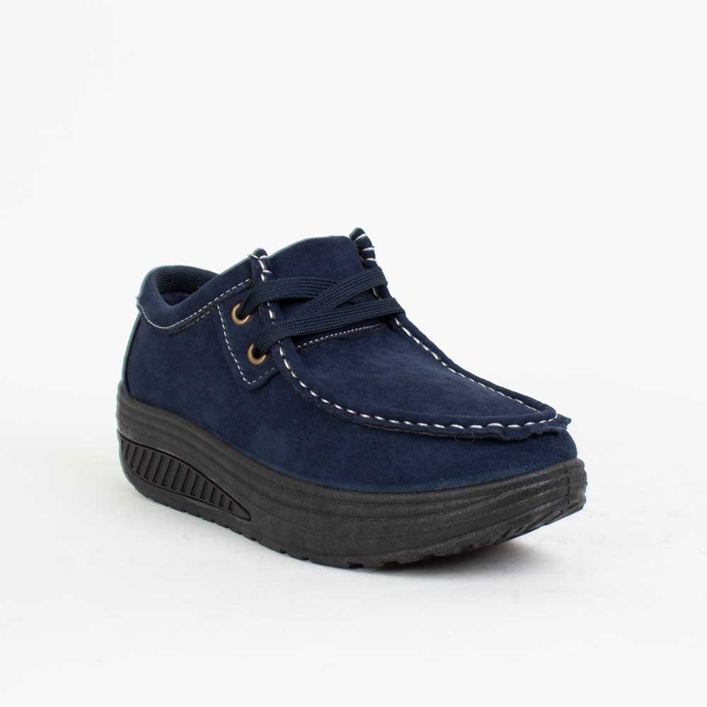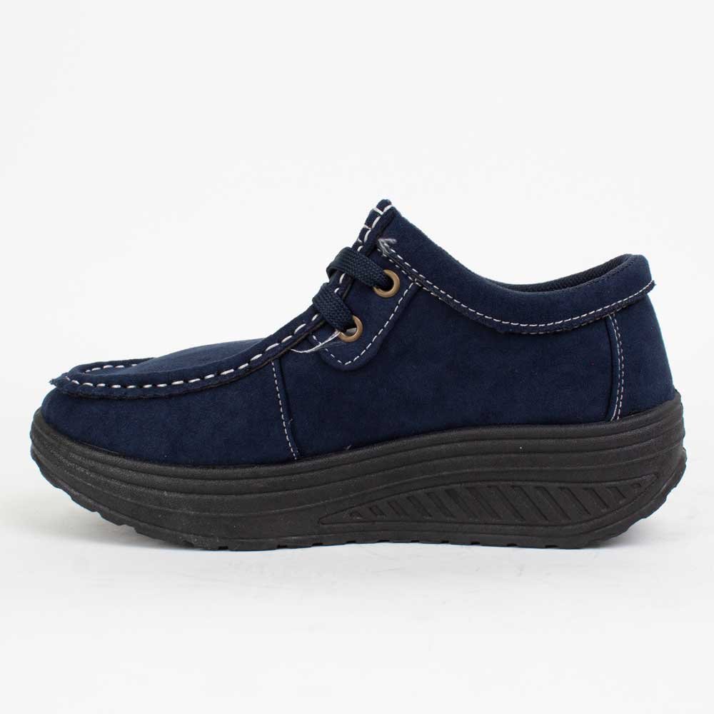 Zapato de Mujer New Walk color Azul Marino. Estilo casual. Capellada en poliéster. Sistema de ajuste mediante cordones al tono. Planta de 4,5 cm y caña de 5,5 cm de alto. Material Capellada: Poliéster. Material Forro: poliéster. Material Planta: PVC. Horma Pequeña