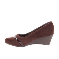Zapato de mujer color café, estilo formal, capellada símil cuero gamuza. Detalle de pieza acharolada en empeine. Plantilla confort perfecta para el día a día. Taco chino. Material Capellada: Poliuretano. Material Forro: Poliuretano. Material Planta: Goma. Altura Taco: 6cm Horma Normal.